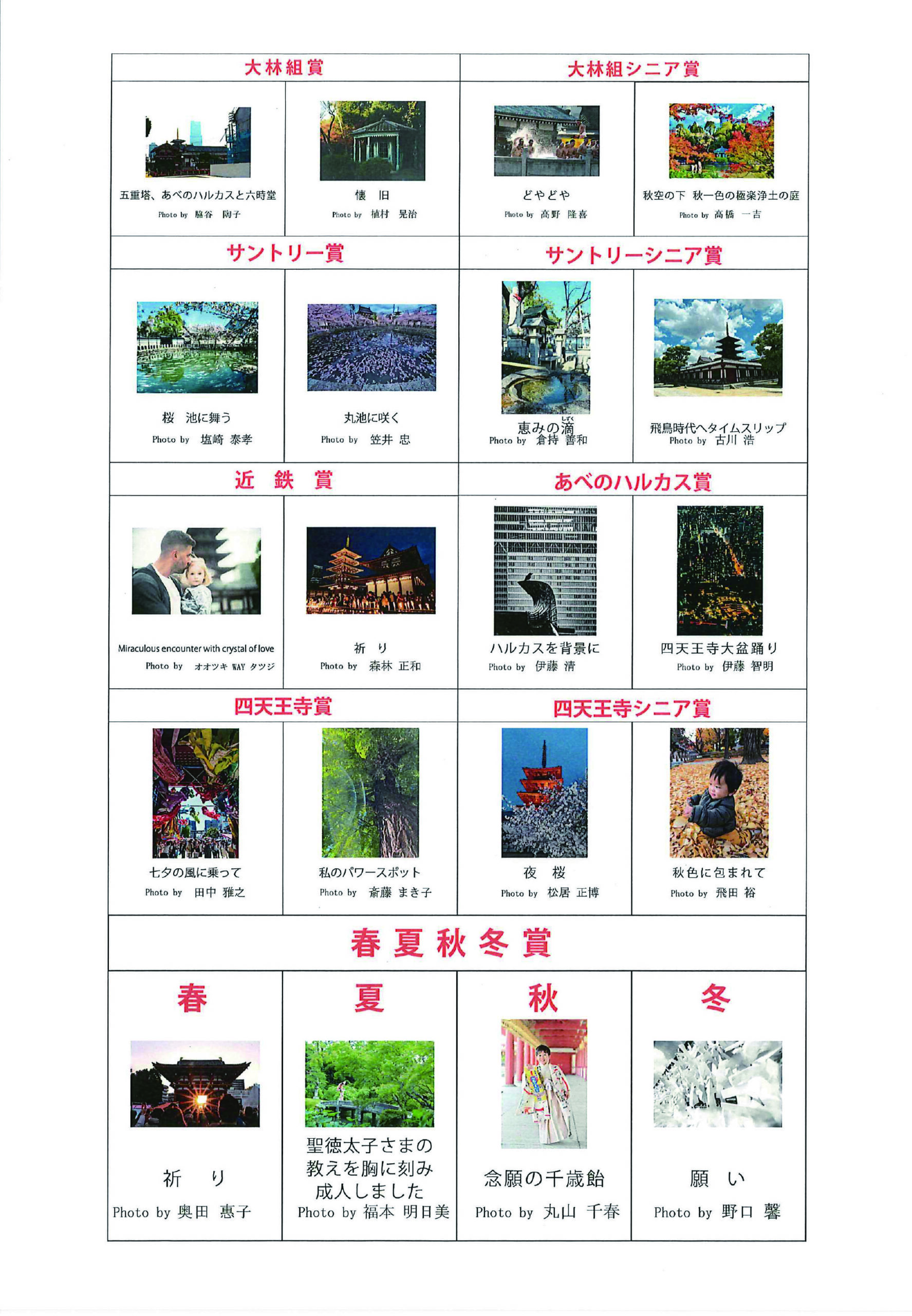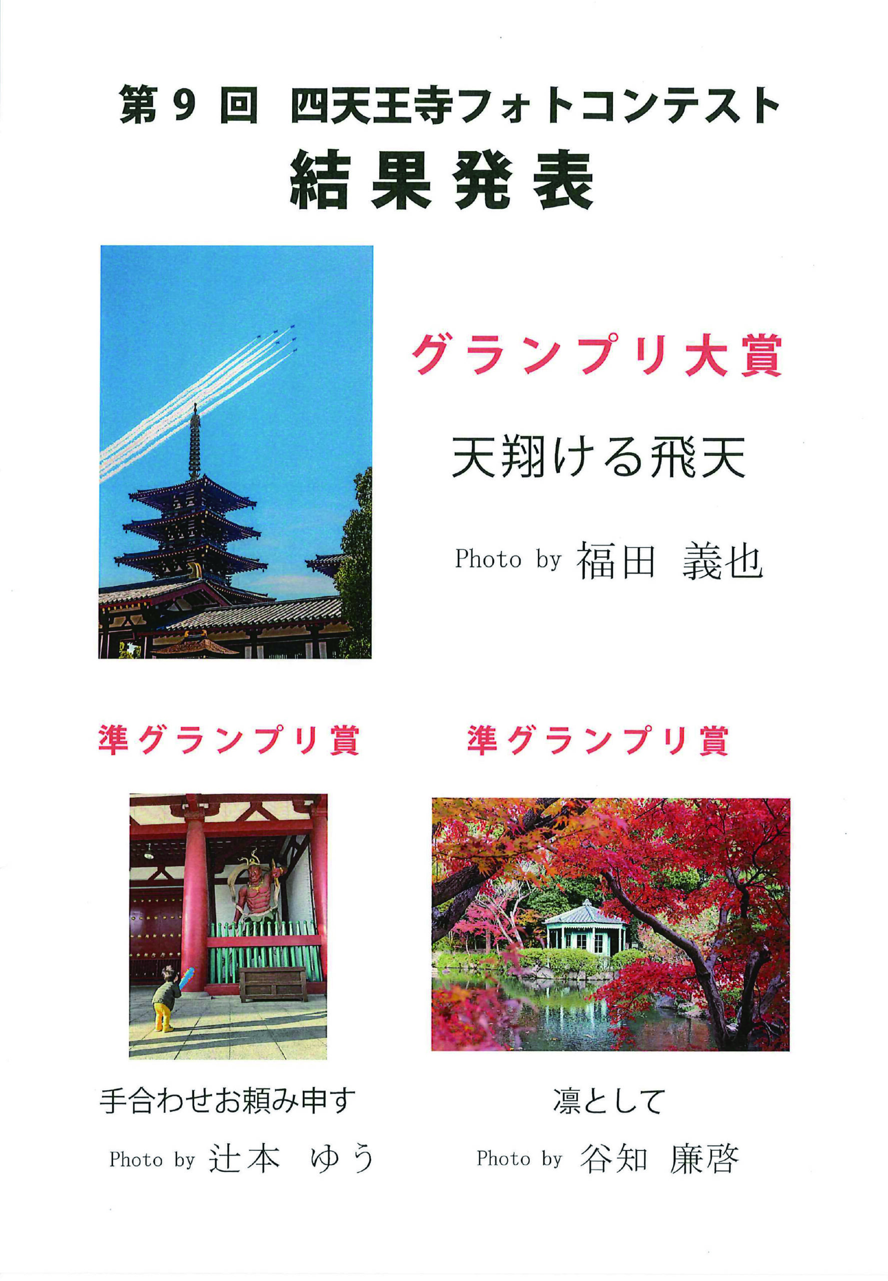 「第9回 四天王寺フォトコンテスト」のグランプリ大賞、準グランプリ、
