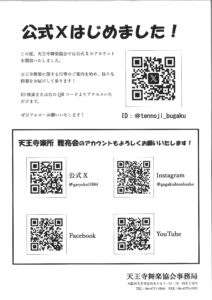 | 問合せ | 天王寺舞楽協会事務局 連絡先:06-6771-0066(代)9:00~17:00 |