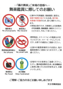 舞楽鑑賞の際は、ご来場いただきました全ての皆様に快適にご鑑賞いただくため、ご理解ご協力いただきますようお願い申しあげます。